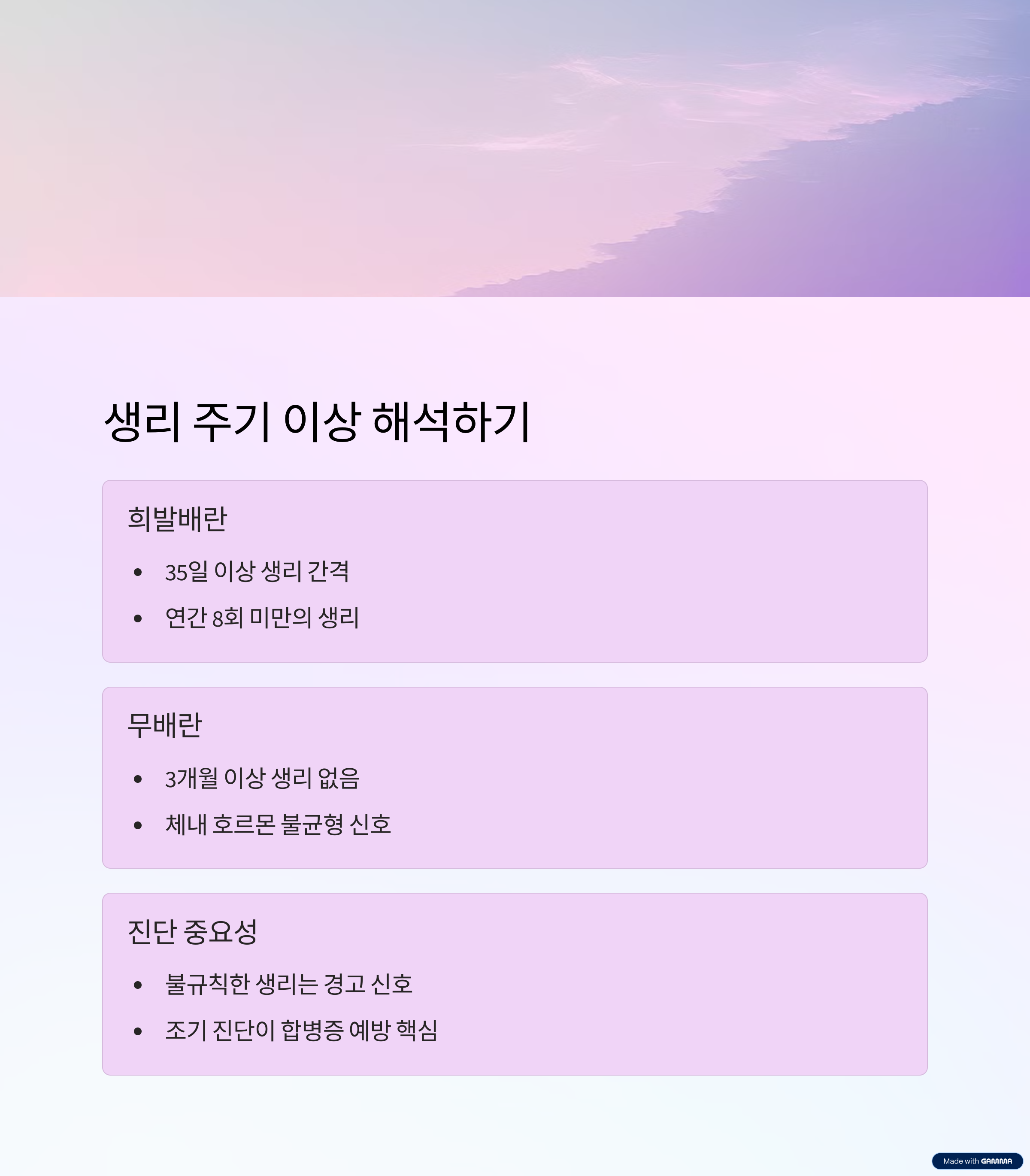 "단순 생리 불순이 아닌 체계적인 질병 평가가 이루어지는 시점입니다" 📌