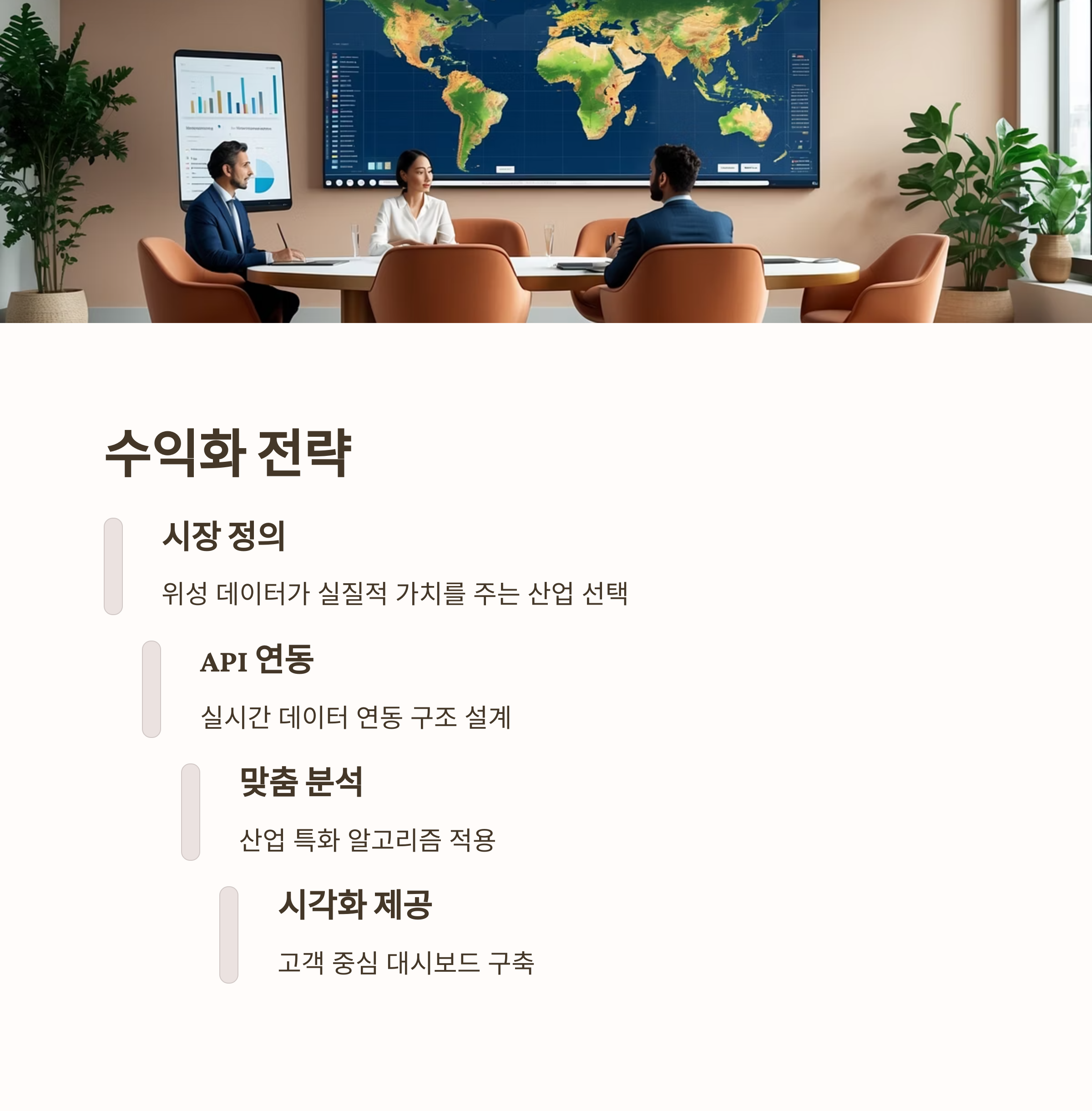| 1단계 | 시장 정의 | 위성 데이터가 실질적 가치를 주는 산업 선택 |