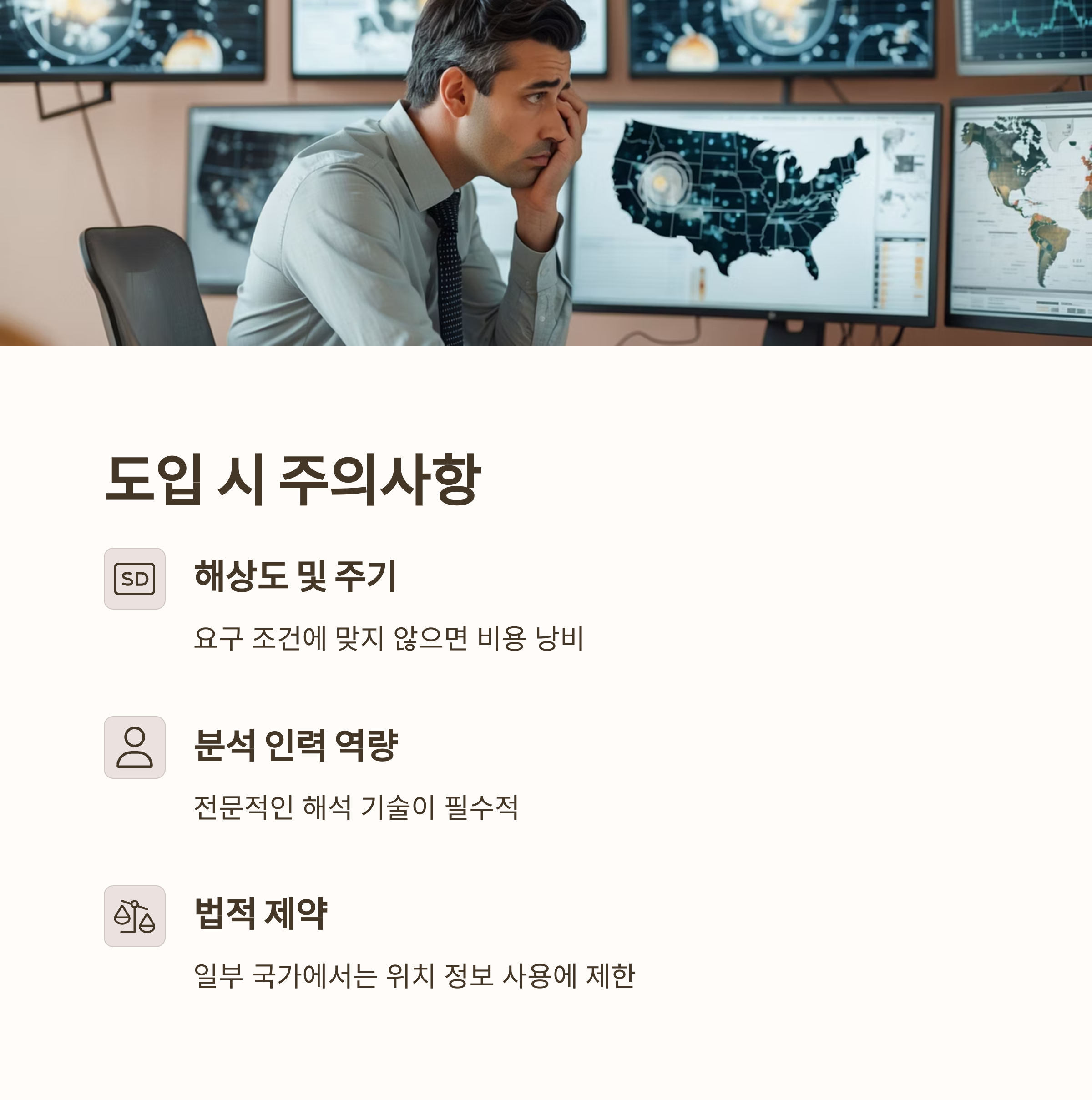 - 해상도 및 주기: 요구 조건에 맞지 않으면 비용 낭비