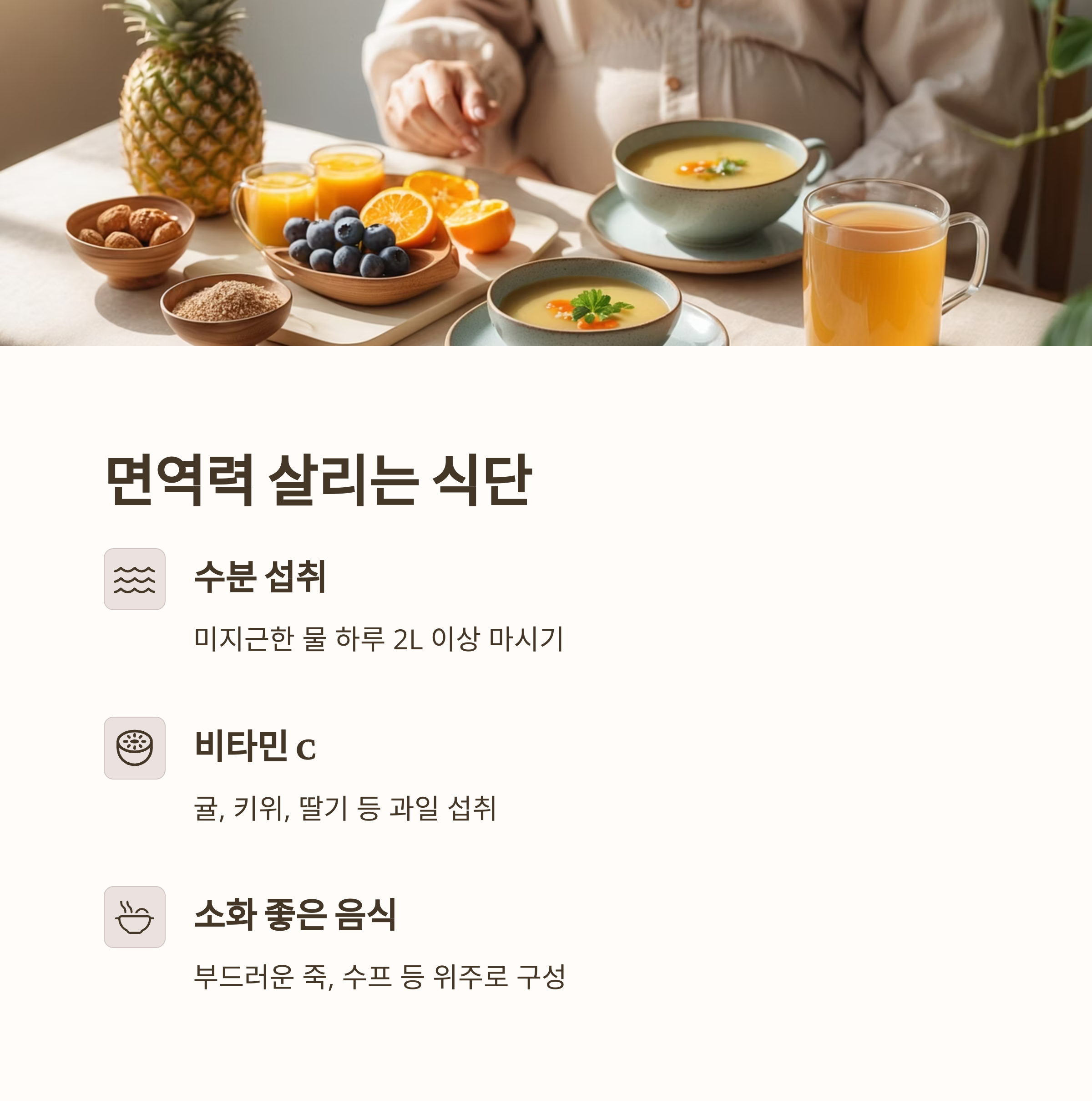 몸이 아플 때일수록 먹는 게 중요하다는 말, 다들 들어보셨죠? 저는 평소보다 더 신경 써서 영양소를 챙겼어요. 무엇보다도 수분 섭취가 핵심이에요. 따뜻한 물을 자주 마시는 것만으로도 감기 회복에 큰 도움이 되거든요.