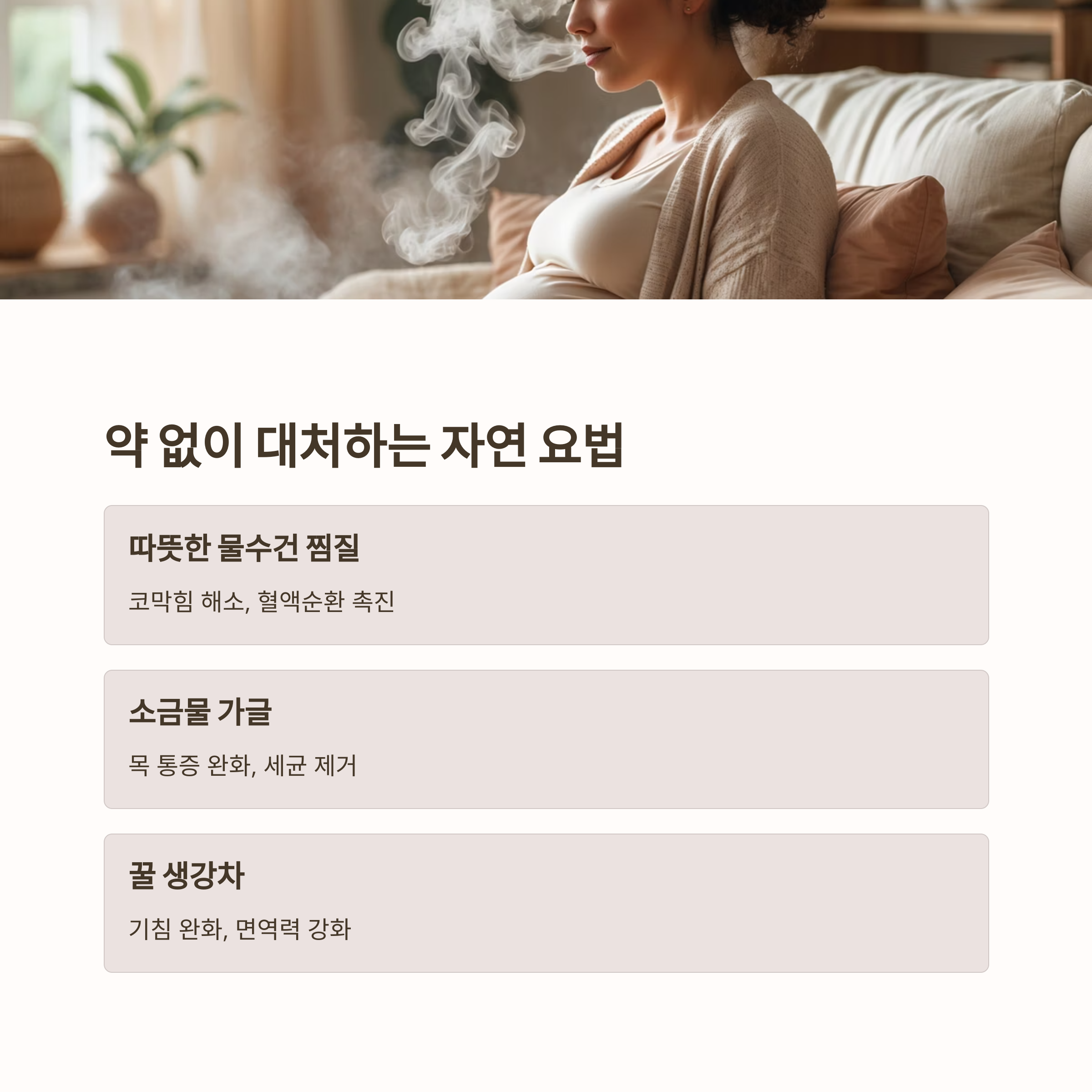 | 따뜻한 물수건 찜질 | 코막힘 해소, 혈액순환 촉진 |