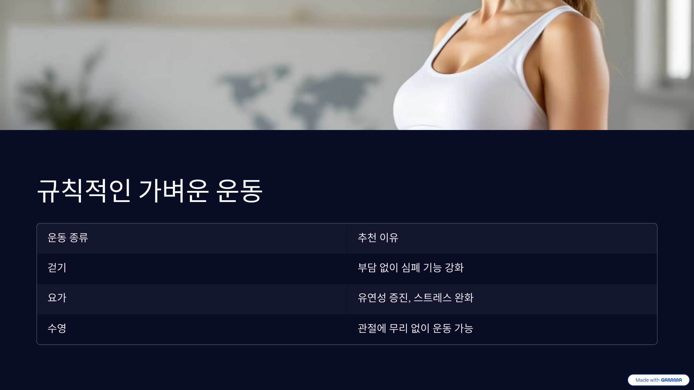 | 운동 종류 | 추천 이유 |