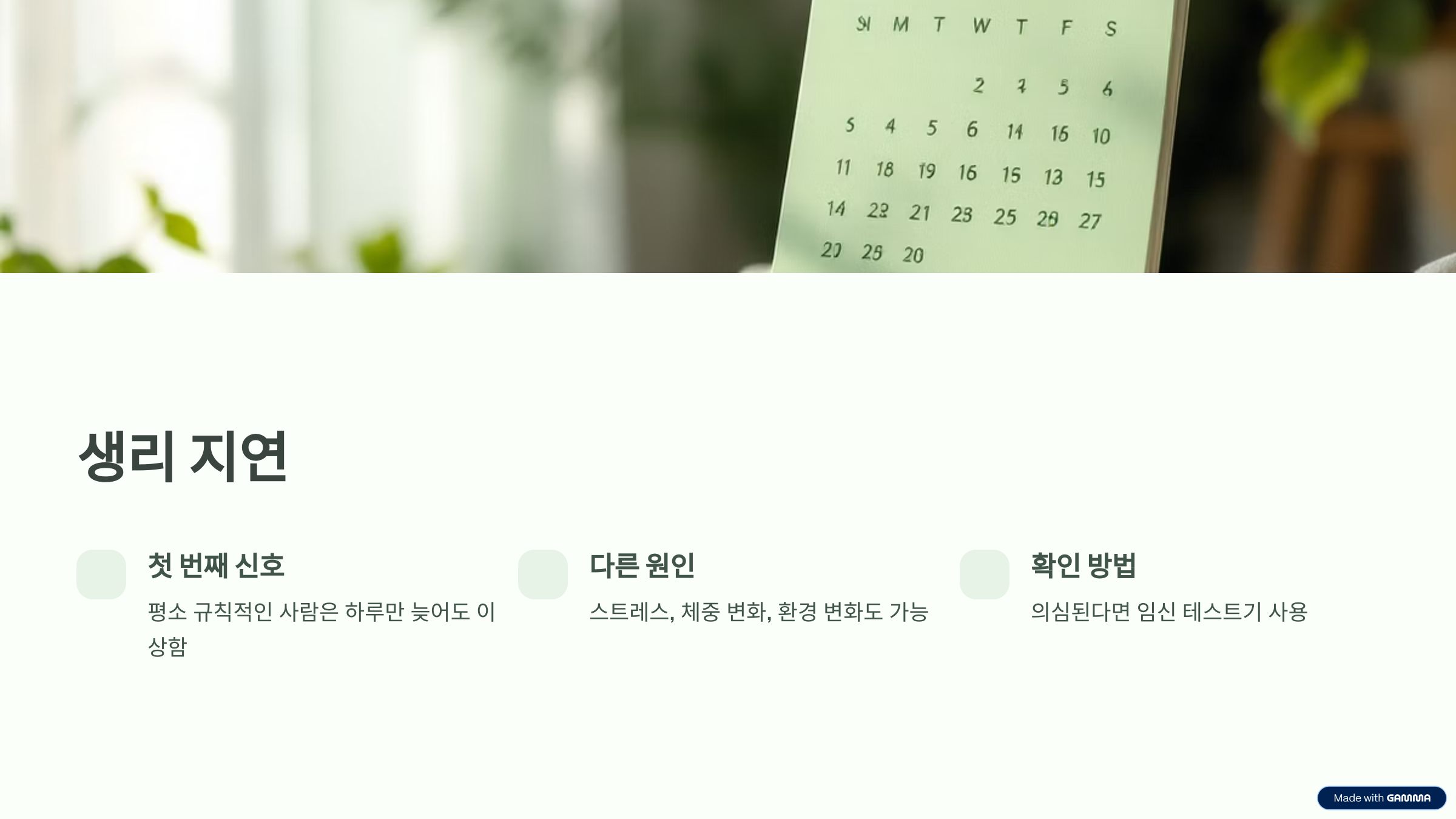 임신을 가장 먼저 의심하게 되는 신호 중 하나는 바로 생리 지연이에요. 평소 생리 주기가 규칙적인 사람이라면 단 하루만 늦어도 뭔가 이상하다고 느낄 수 있어요. 물론 스트레스나 체중 변화, 환경 변화로 생리가 늦어질 수도 있지만, "혹시나" 하는 생각이 든다면 임신 테스트기를 사용해 보는 것도 좋은 방법이에요. 저도 그때 살짝 긴장하면서 테스트기를 꺼냈던 기억이... 아직도 생생해요.