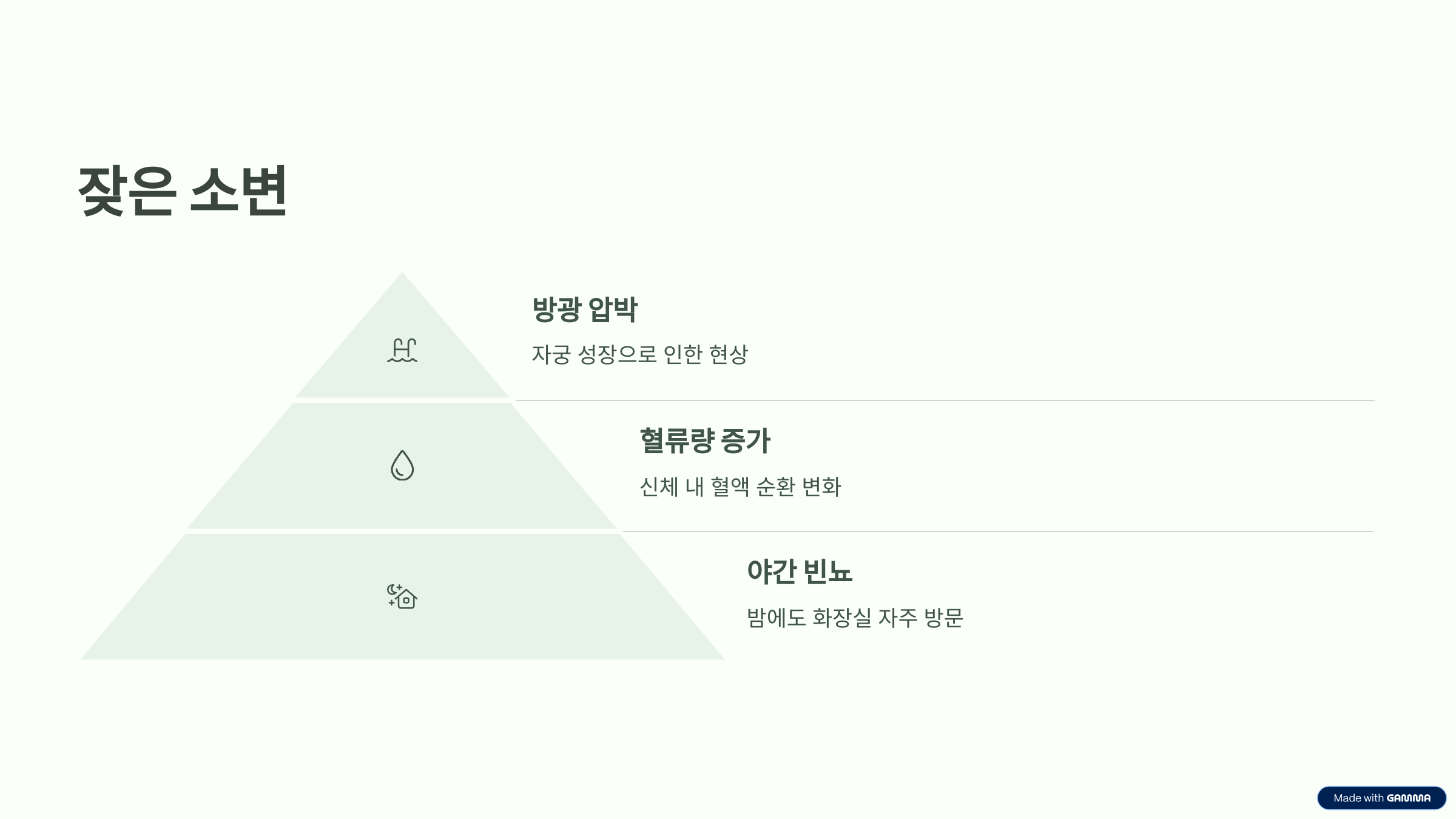 자궁 확장 | 방광 압박으로 소변 빈도 증가 |