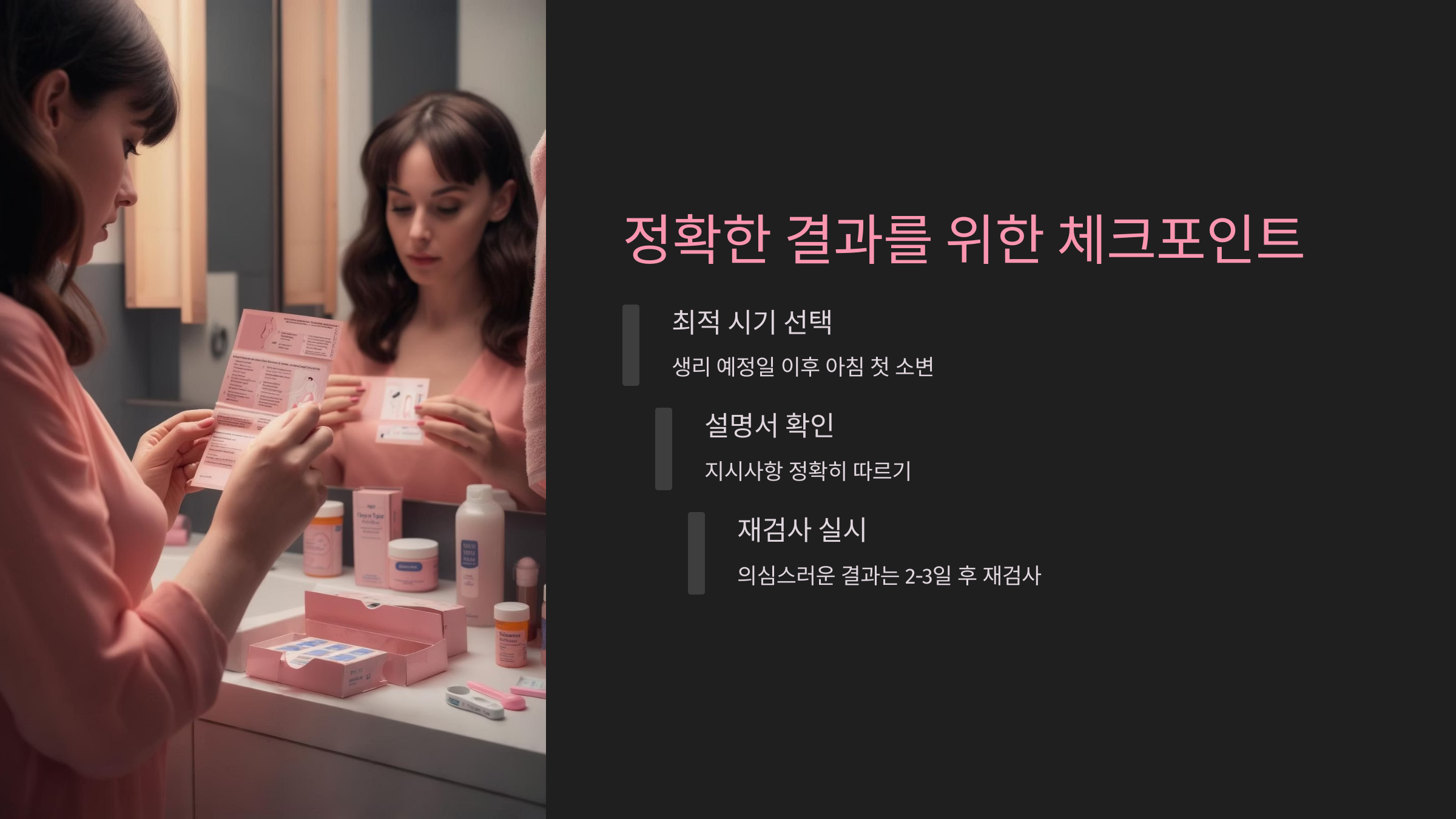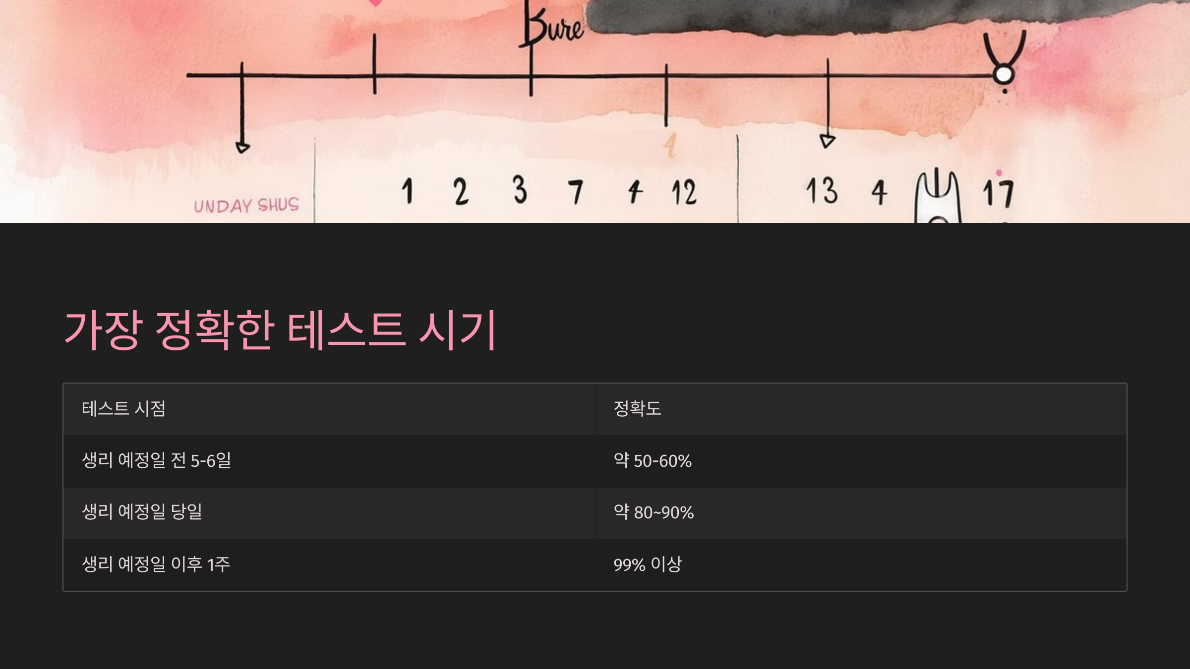 사실 임신 여부가 가장 정확하게 나오는 시점은 생리 예정일 이후입니다. 기다림은 좀 지루할 수 있지만, 그만큼 신뢰도 높은 결과를 얻을 수 있어요. 조금 더 구체적으로 살펴볼까요?