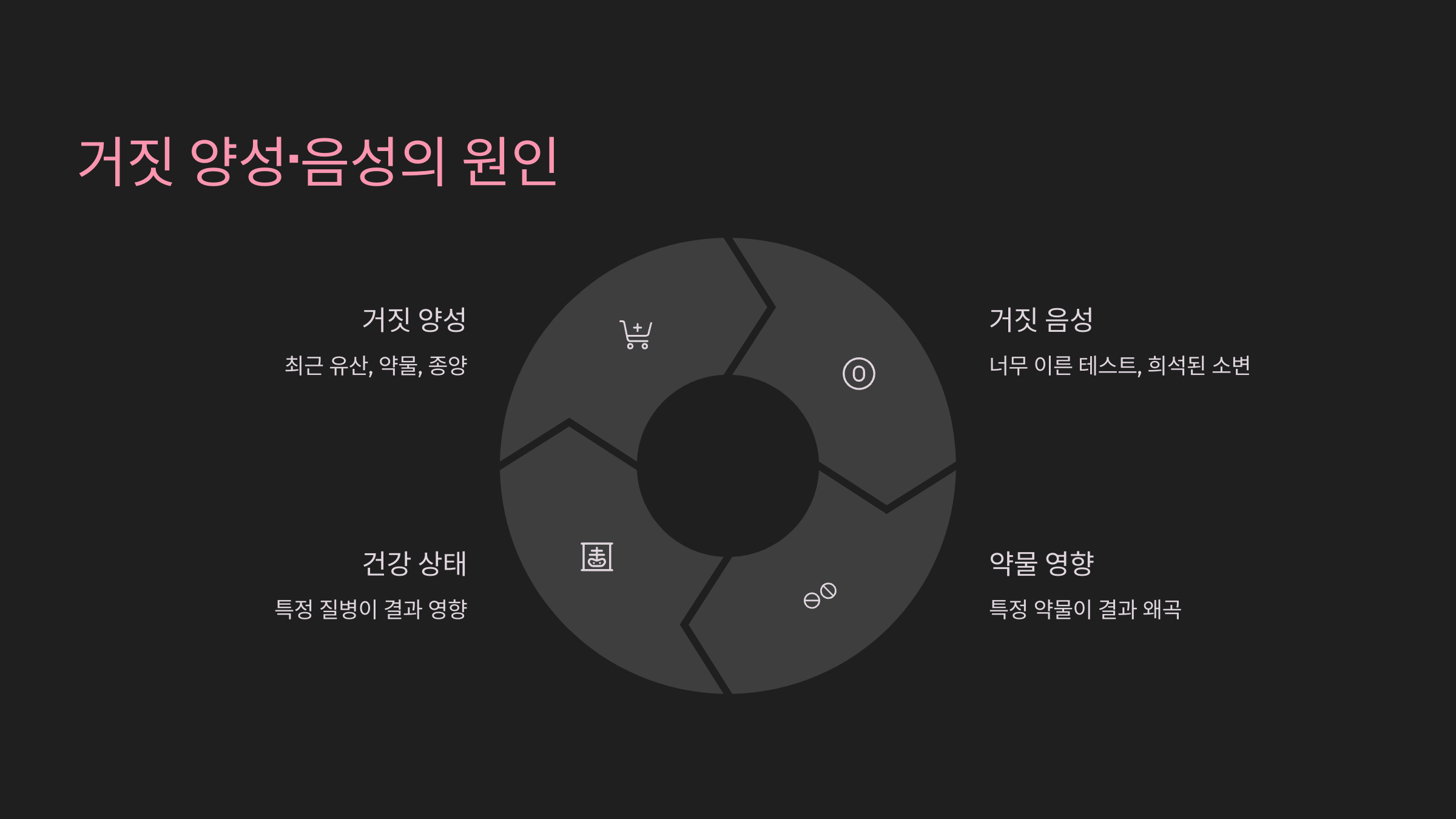 | 거짓 양성 | 최근 임신(유산 후), 약물 복용, 특정 질병(종양 등) |