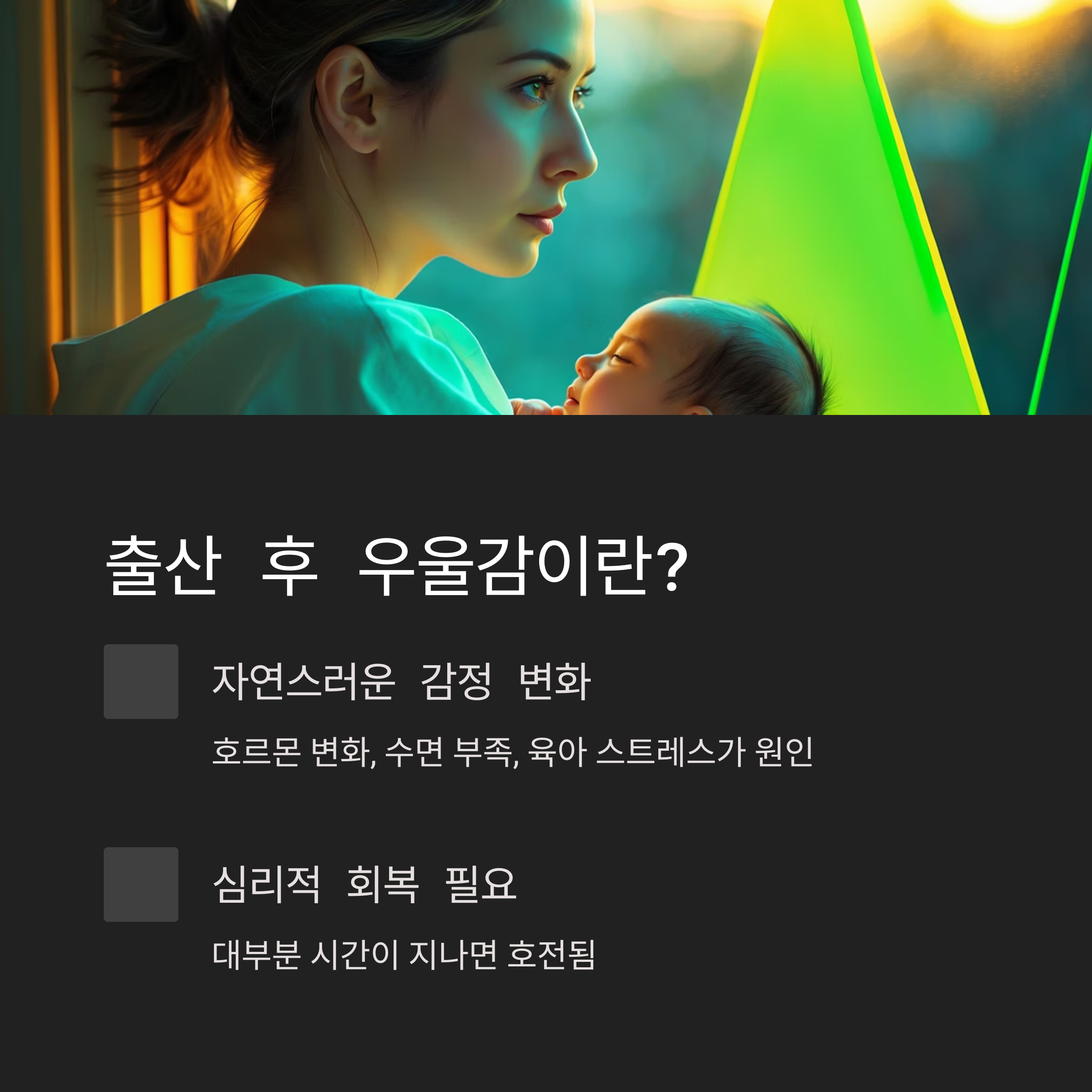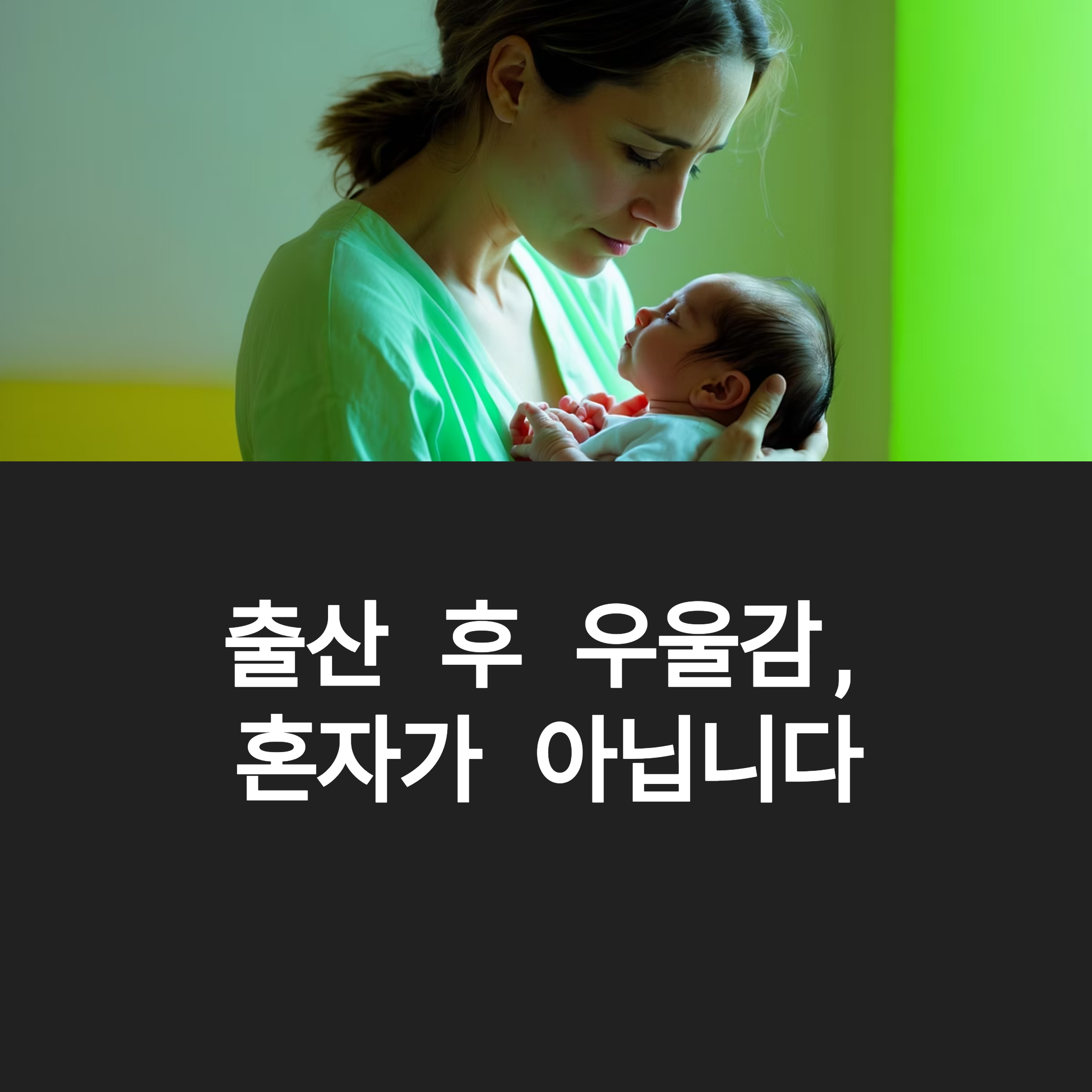 “나만 이런 감정을 느끼는 걸까?” 출산 후 찾아오는 우울감, 누구에게나 올 수 있습니다. 중요한 건 혼자서 이겨내려 하지 않는 것이죠.